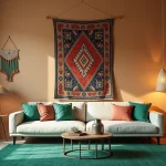 - 🪑 Canapé aux lignes épurées avec tapis motif ethnique